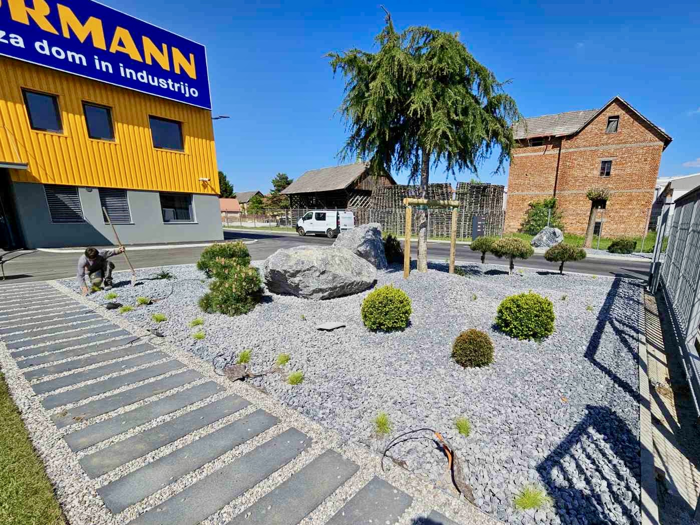 Krajinska arhitektura in zasaditev okolice podjetja Hörmann Slovenia.